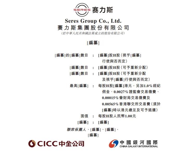 赛力斯,于2025年4月28日在港交所递交招股书,由中金公司、中国银河国际联席保荐;后于9月23日收到中国证监会境外发行上市备案通知书,可发行不超过3.31477235亿股境外上市普通股并在香港联合交易所上市。